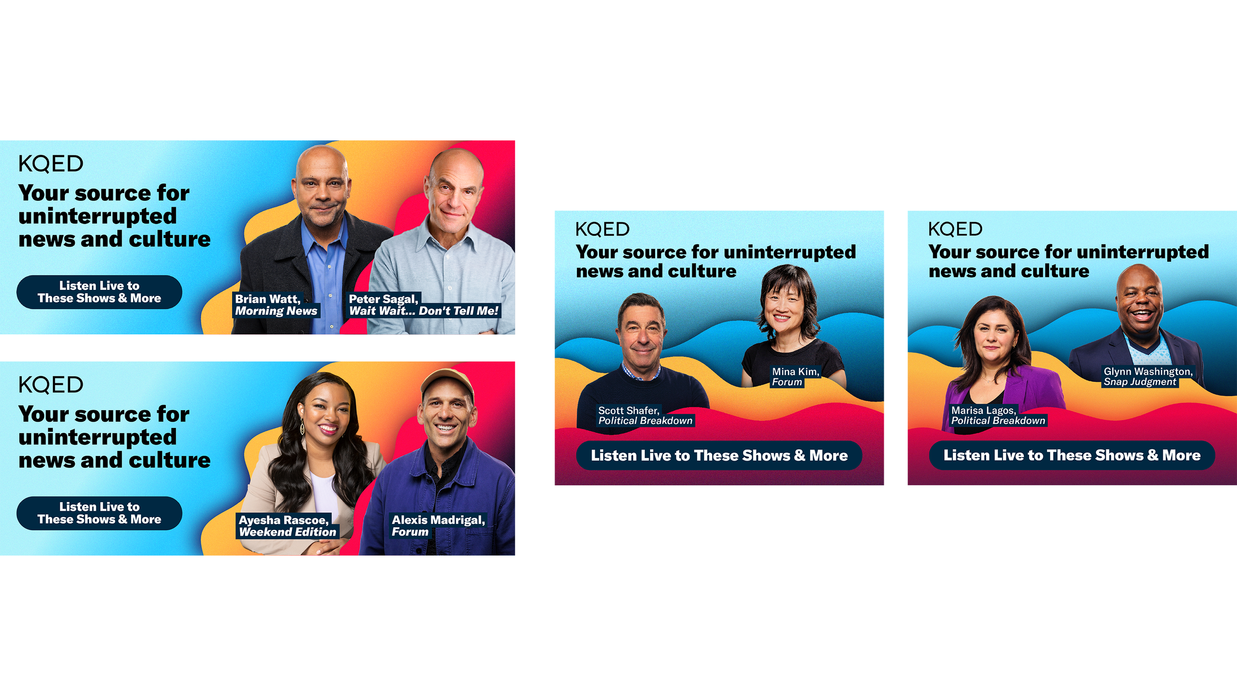 I collaborated with the KQED Marketing team to brainstorm, moodboard, art direct, design, and implement the campaign system.