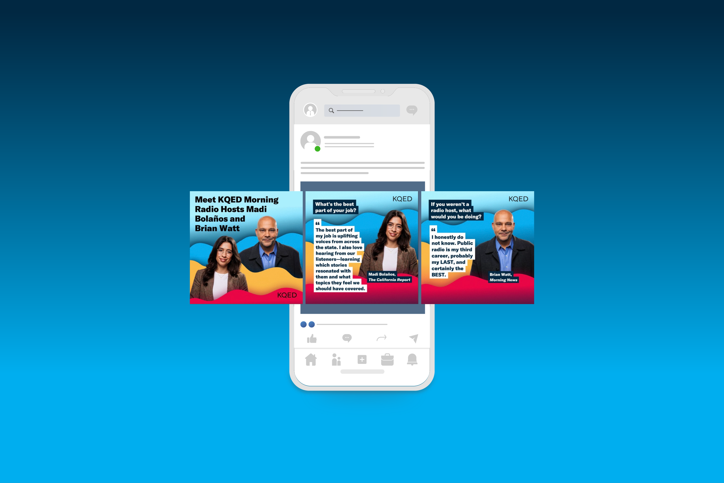 This project is a collaboration with KQED’s Marketing and News teams to create an eye-catching, branded campaign to increase AQH, cumulative audience and marketing share for KQED’s radio station 88.5FM. The campaign aims to educate audiences on KQED radio’s key strengths and points of differentiation, and addresses, where possible, feedback from Audience Intelligence team’s research study on lapsed listeners.