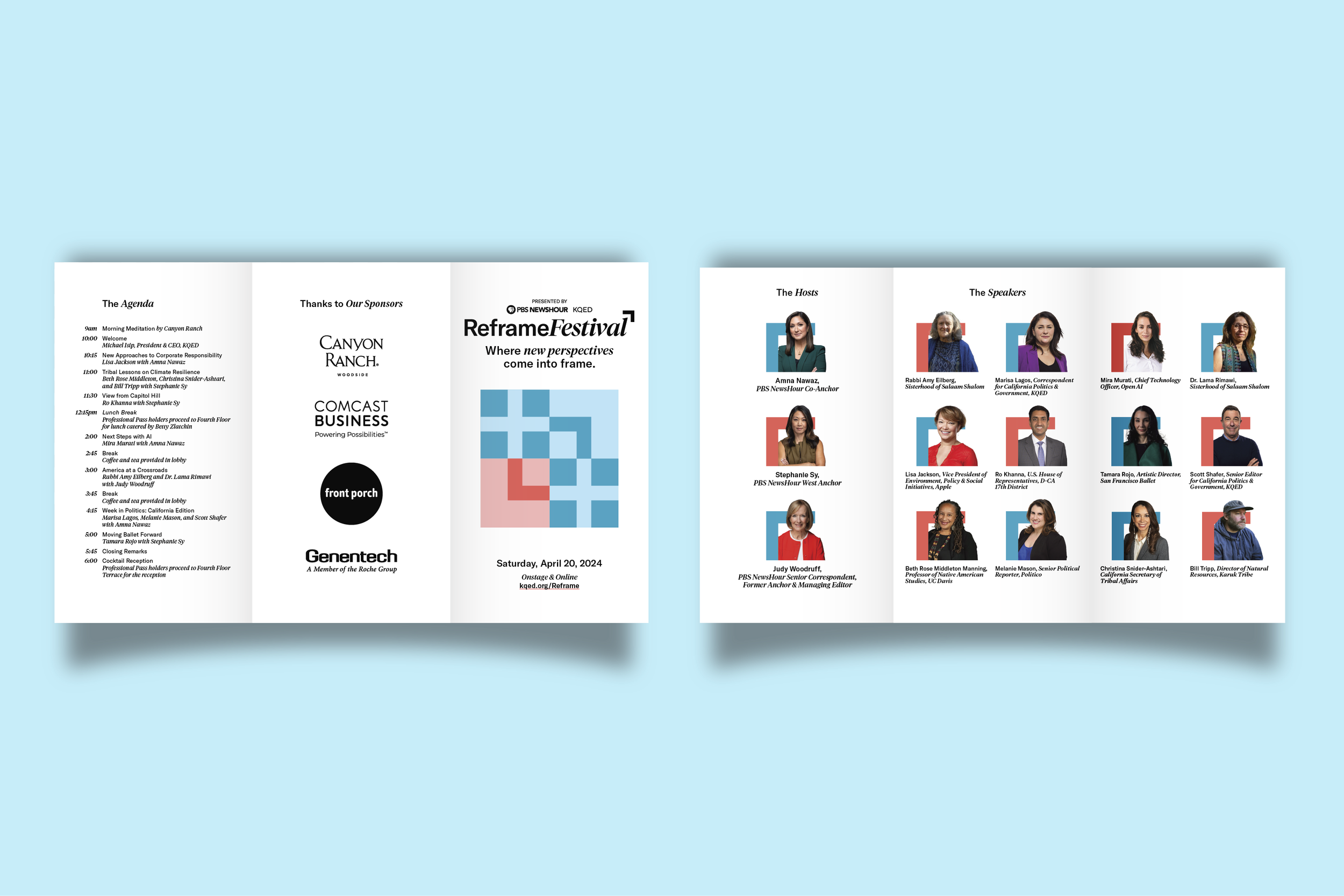 I worked alongside a KQED Creative intern, the KQED Events team and the PBS News/Newshour team to moodboard, art direct, design, and implement the Reframe Festival logo lockup.